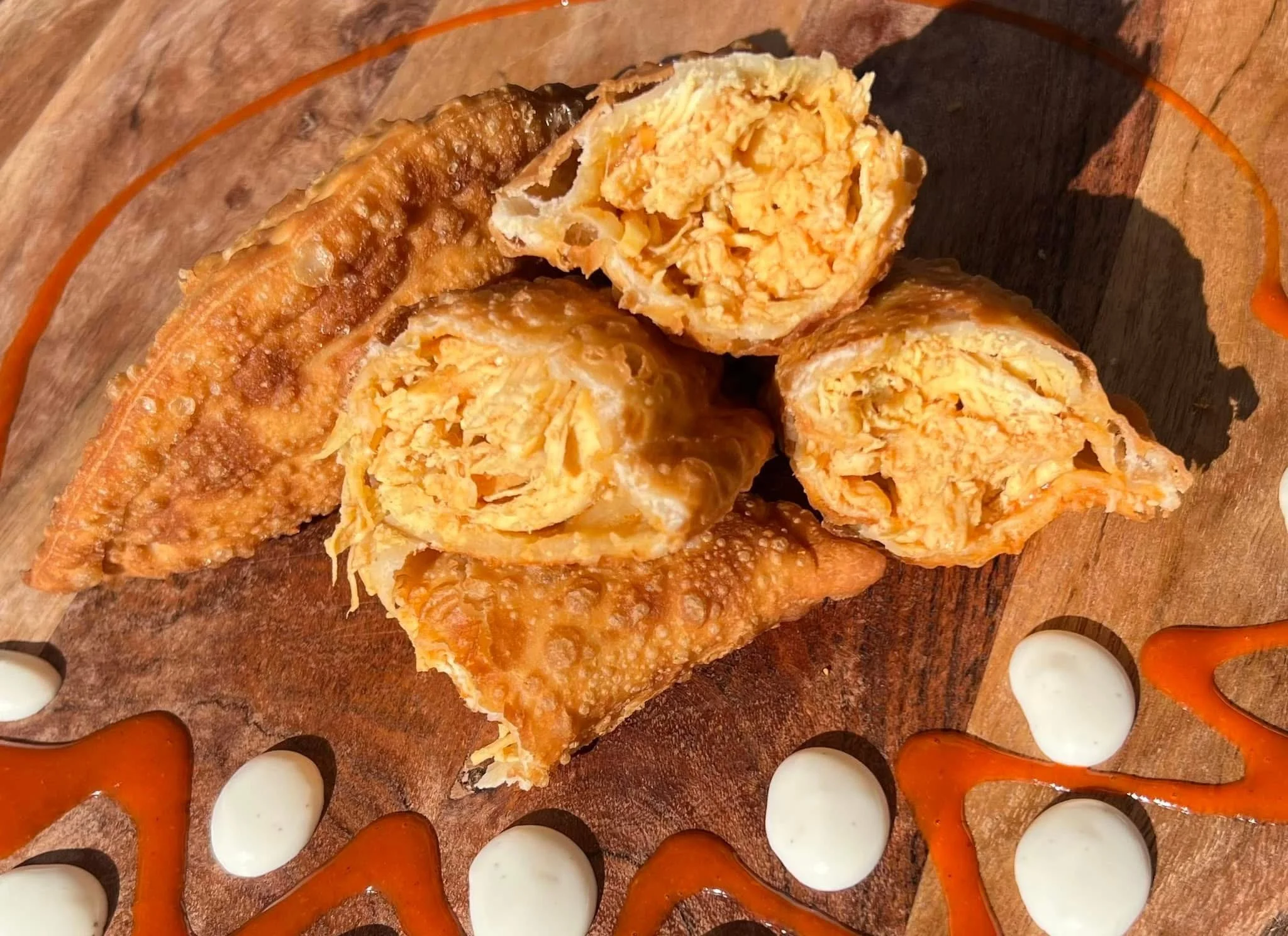 A fiery blend of shredded chicken and buffalo heat, sealed inside our signature empanada and fried to stellar perfection